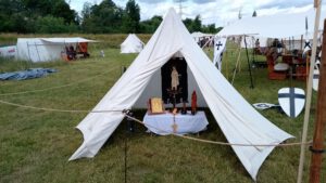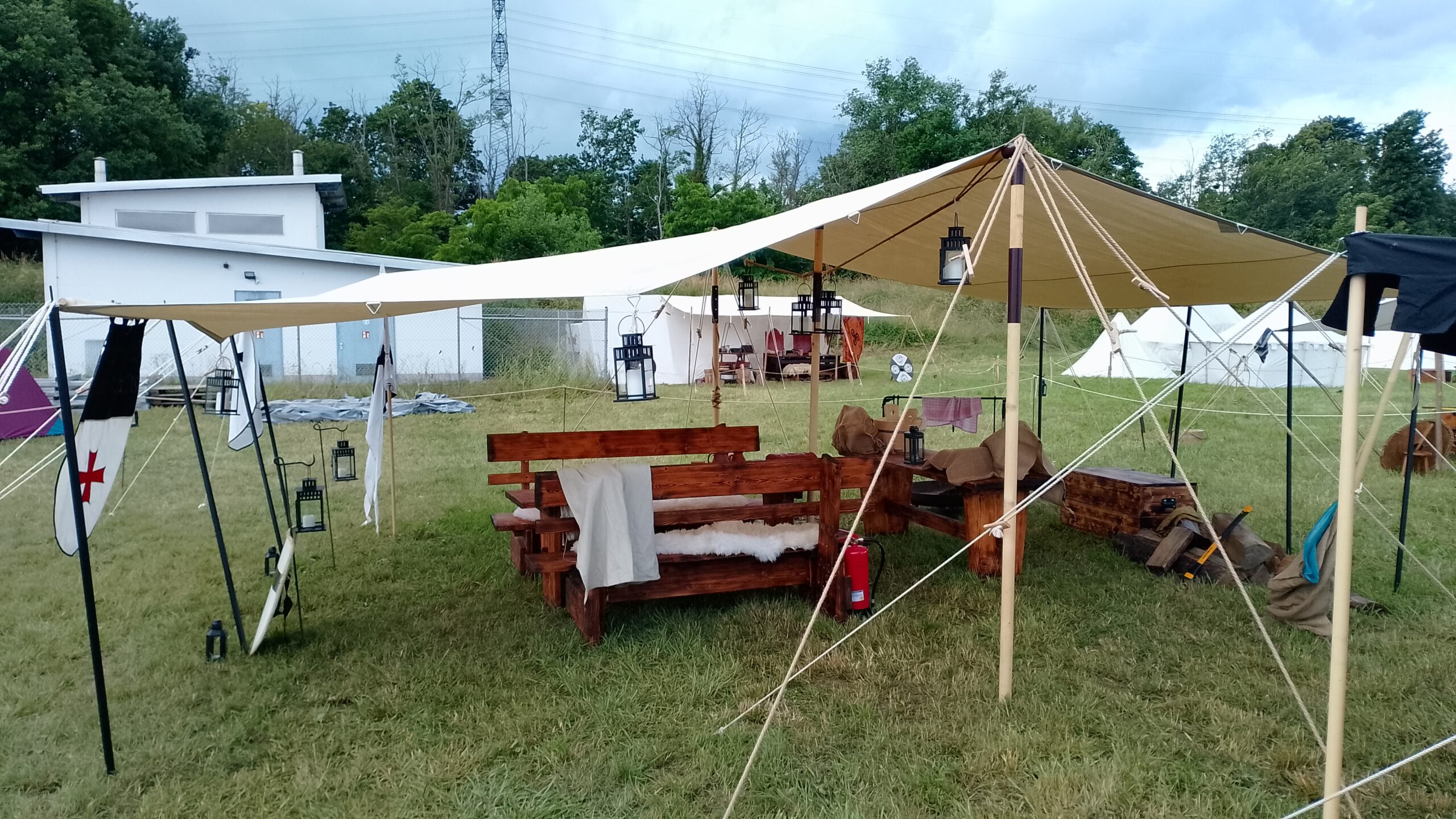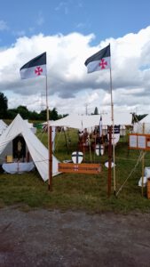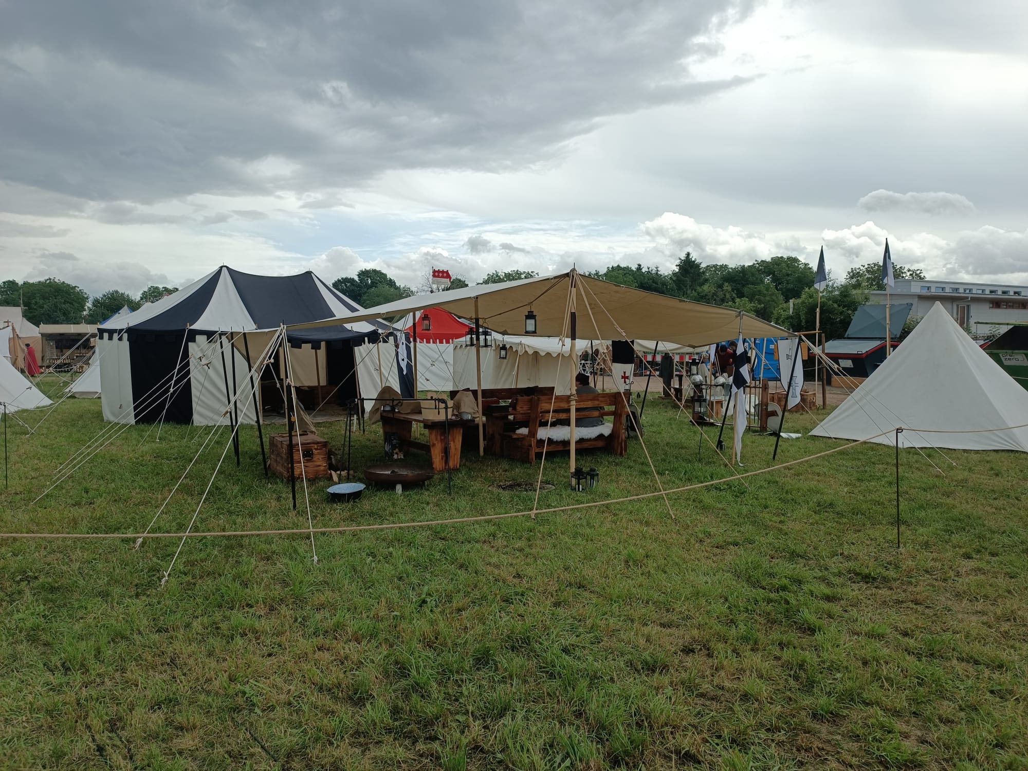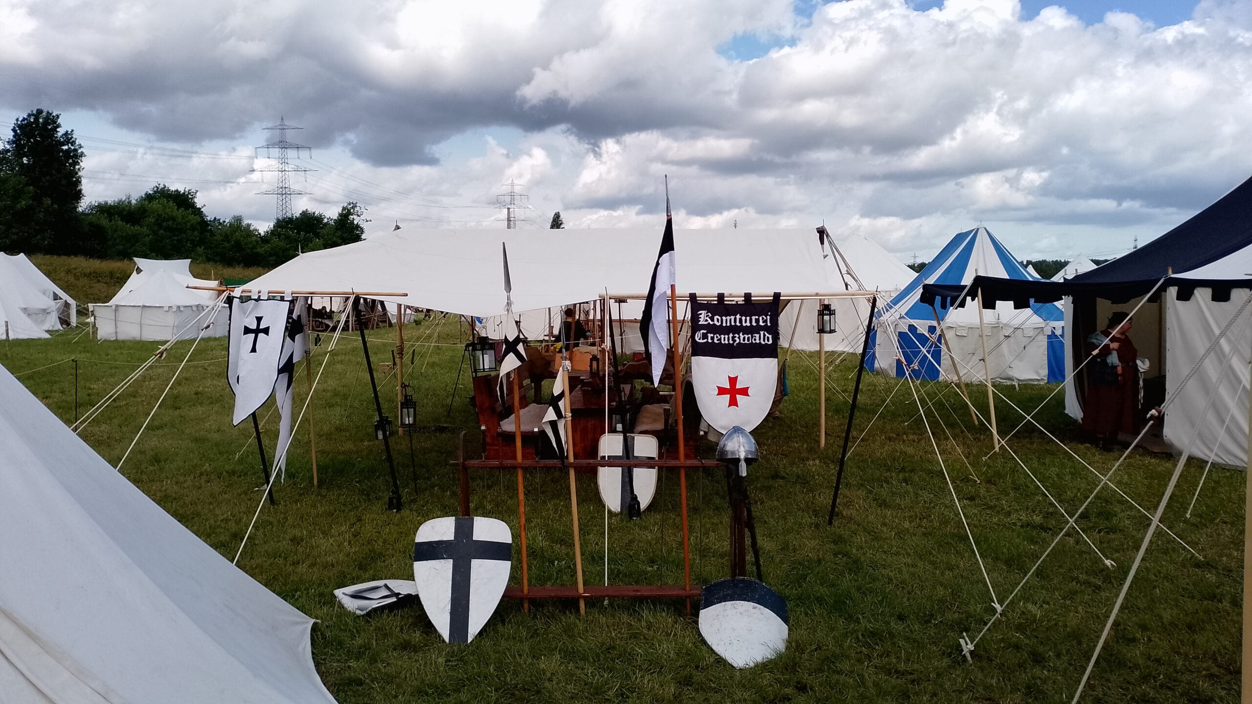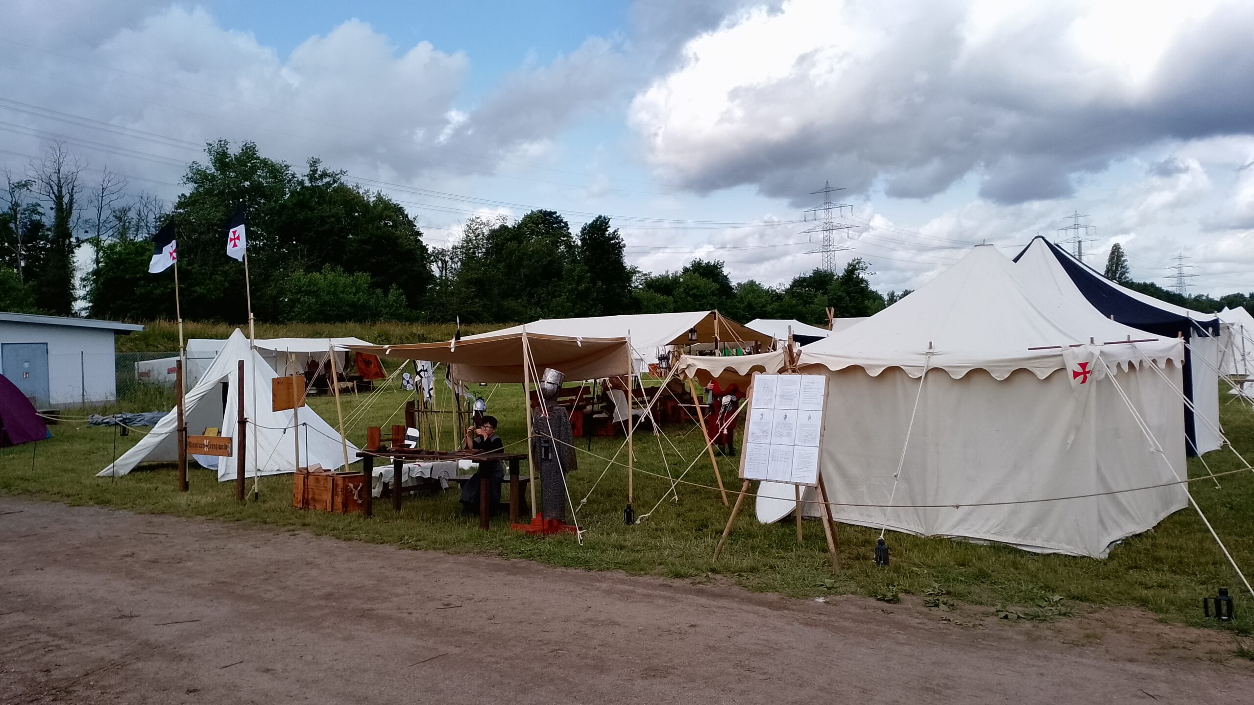 Stark geschwächt lagerten wir am Pfingstwochenende zu dritt in Philippsburg. Ein sehr großer Markt mit vielen tollen Lagern und wir mittendrin, oder etwas am Rande besser gesagt. Die historischen Johanniter, die gleichzeitig als Rettungsdienst tätig waren, lagerten in direkter Nachbarschaft. Tolle Truppe mit tollen Zelten.